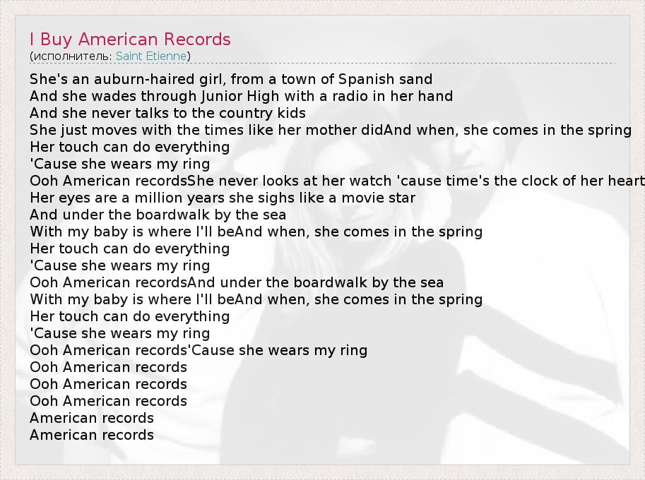 А как ты думаешь, о чем песня "I Buy American Records" ?