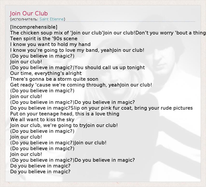 А как ты думаешь, о чем песня "Join Our Club" ?