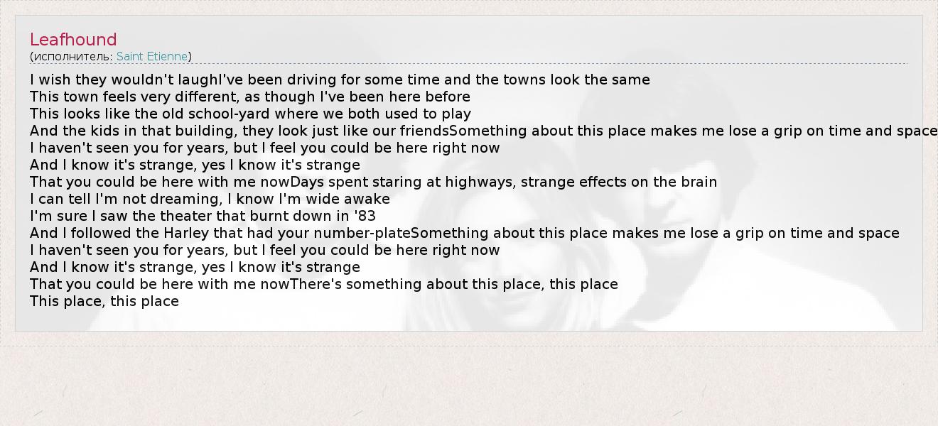 А как ты думаешь, о чем песня "Leafhound" ?