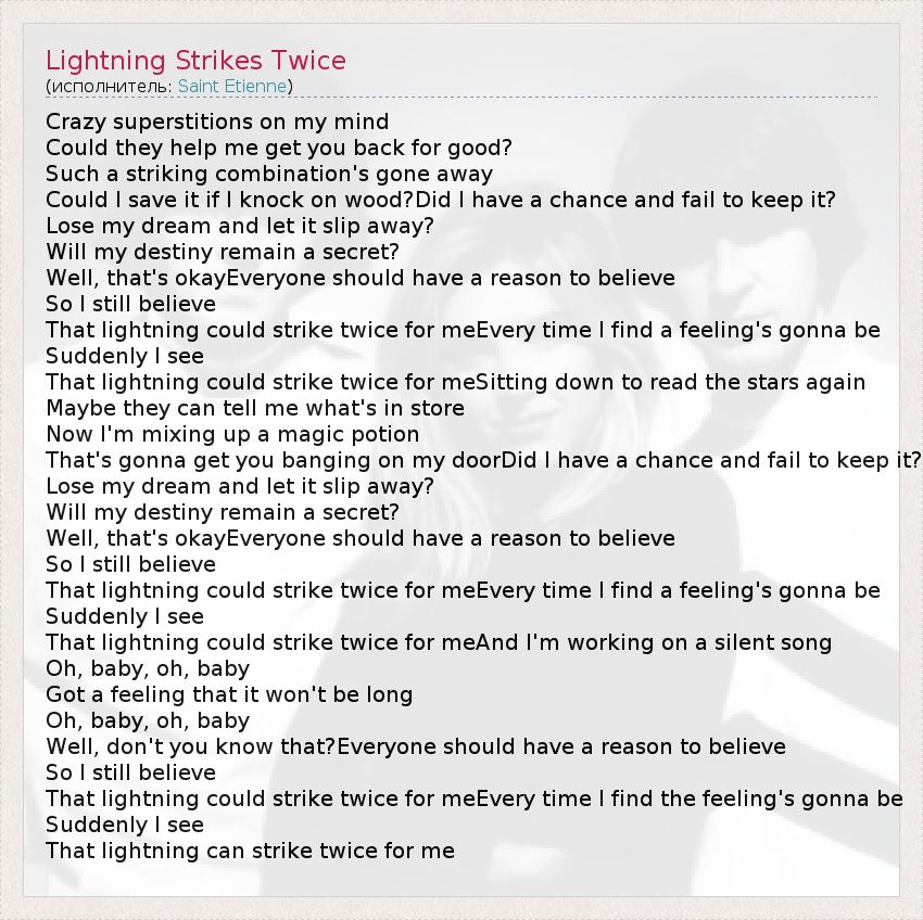 А как ты думаешь, о чем песня "Lightning Strikes Twice" ?