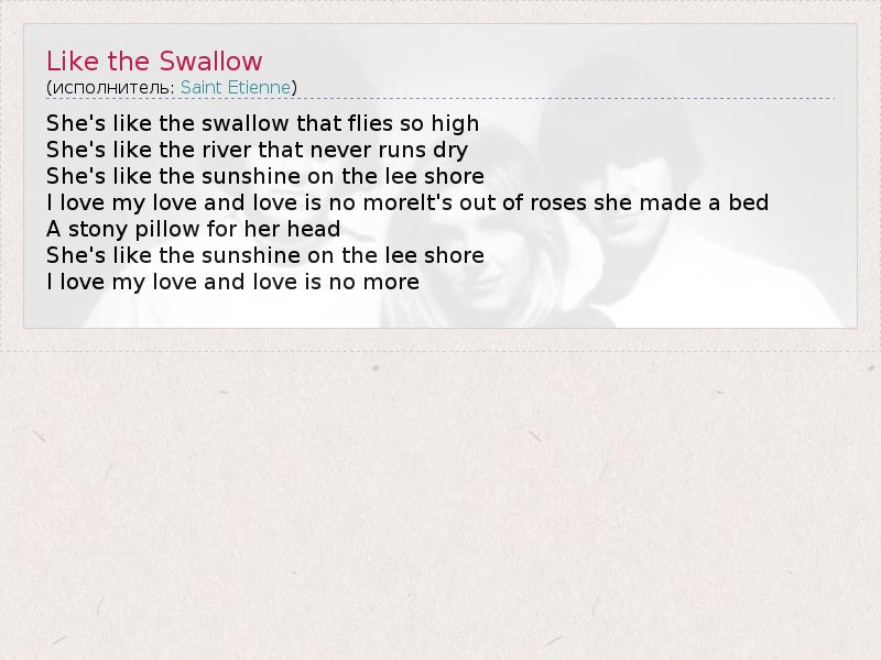 А как ты думаешь, о чем песня "Like the Swallow" ?