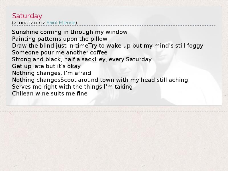 Draw the blind just in timeTry to wake up but my mind's still foggy