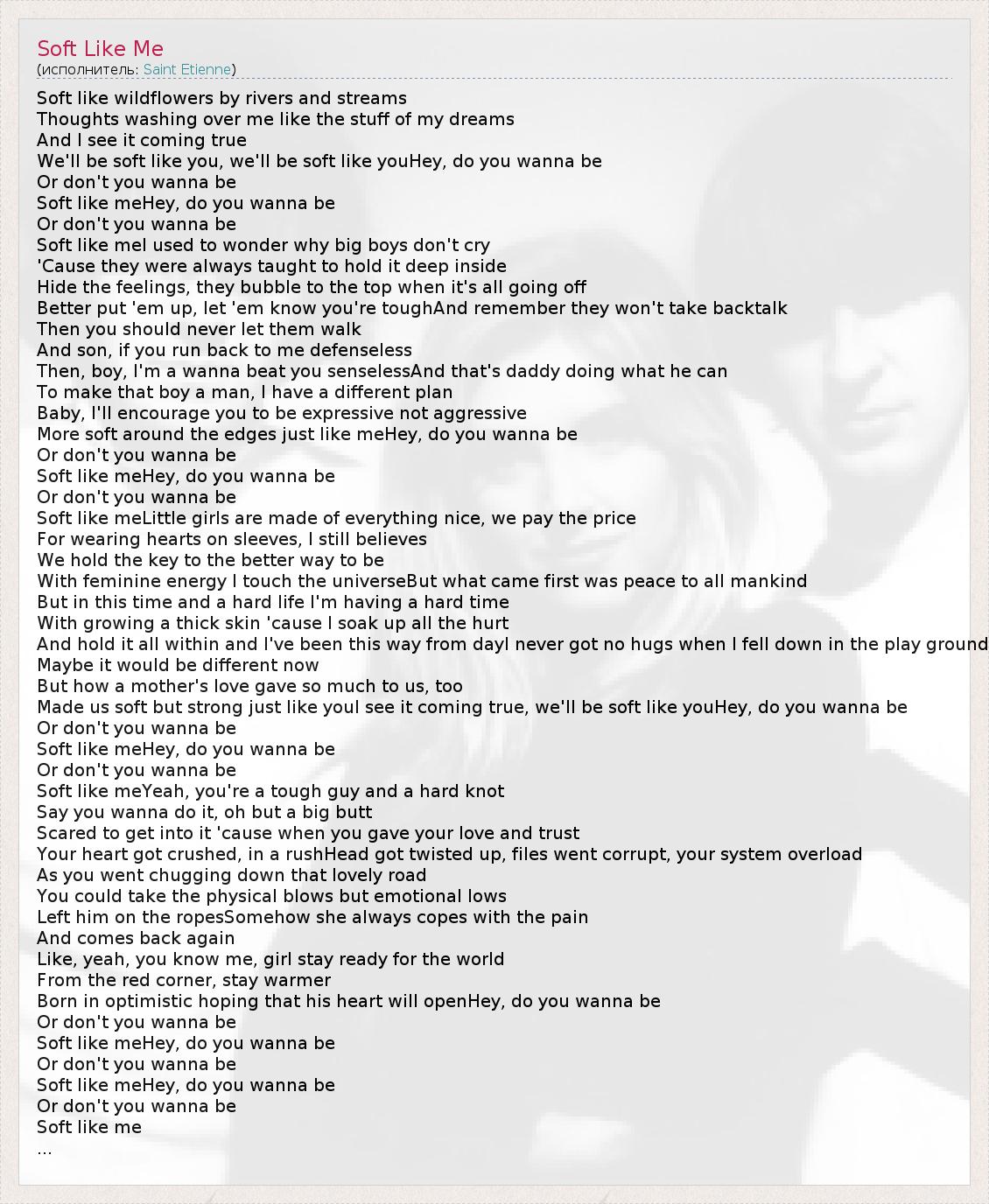 А как ты думаешь, о чем песня "Soft Like Me" ?