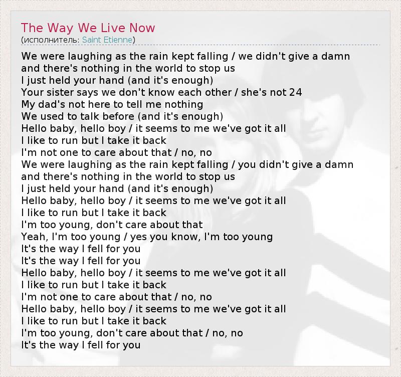 А как ты думаешь, о чем песня "The Way We Live Now" ?