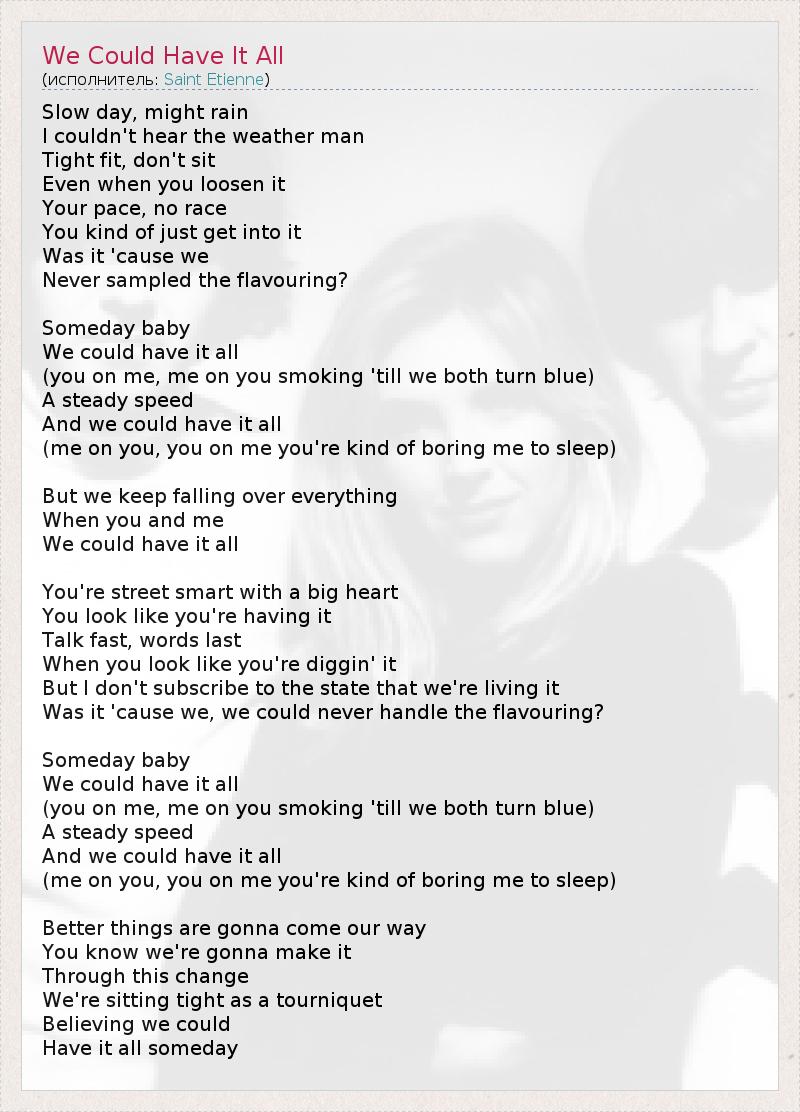 А как ты думаешь, о чем песня "We Could Have It All" ?