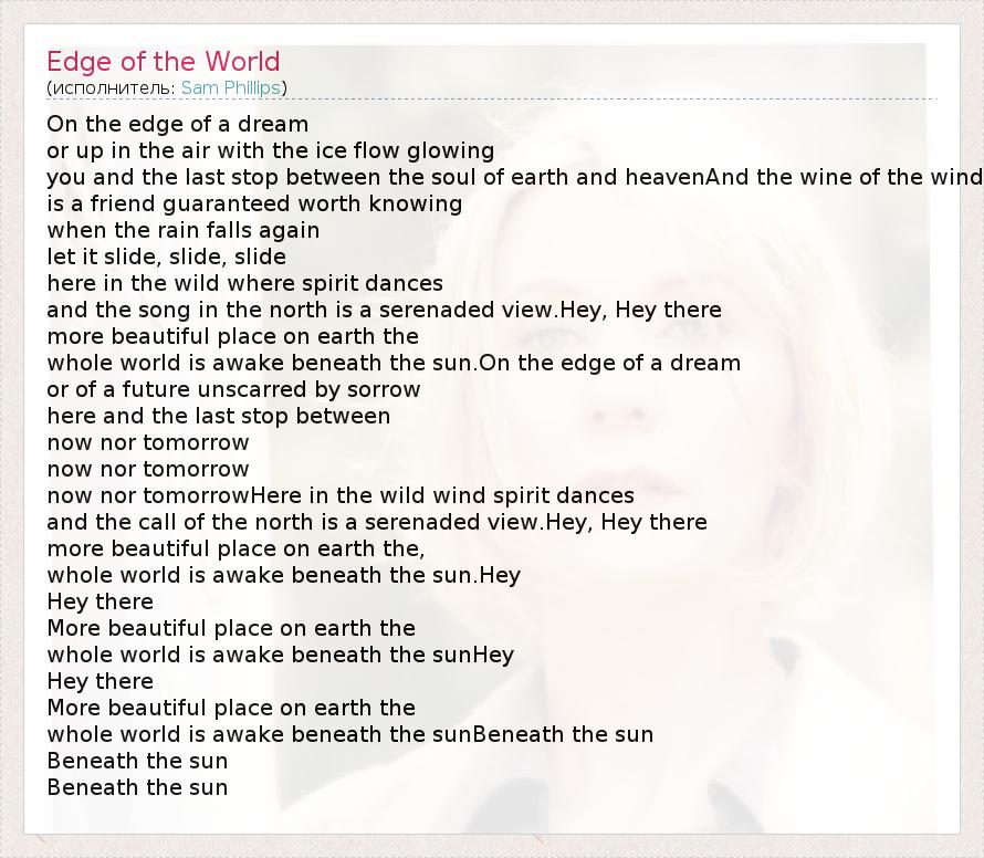А как ты думаешь, о чем песня "Edge of the World" ?