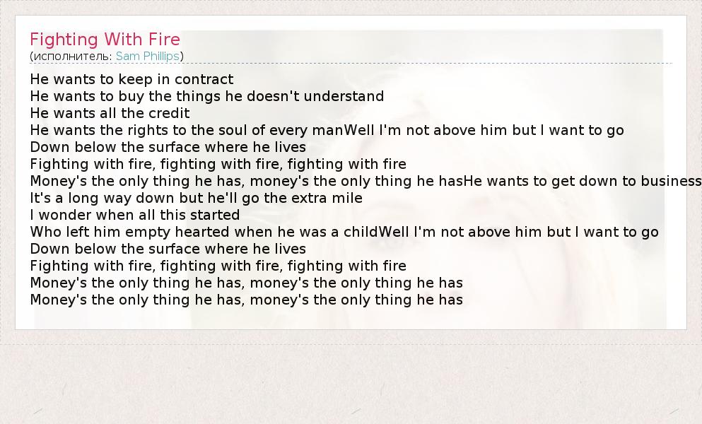 А как ты думаешь, о чем песня "Fighting With Fire" ?