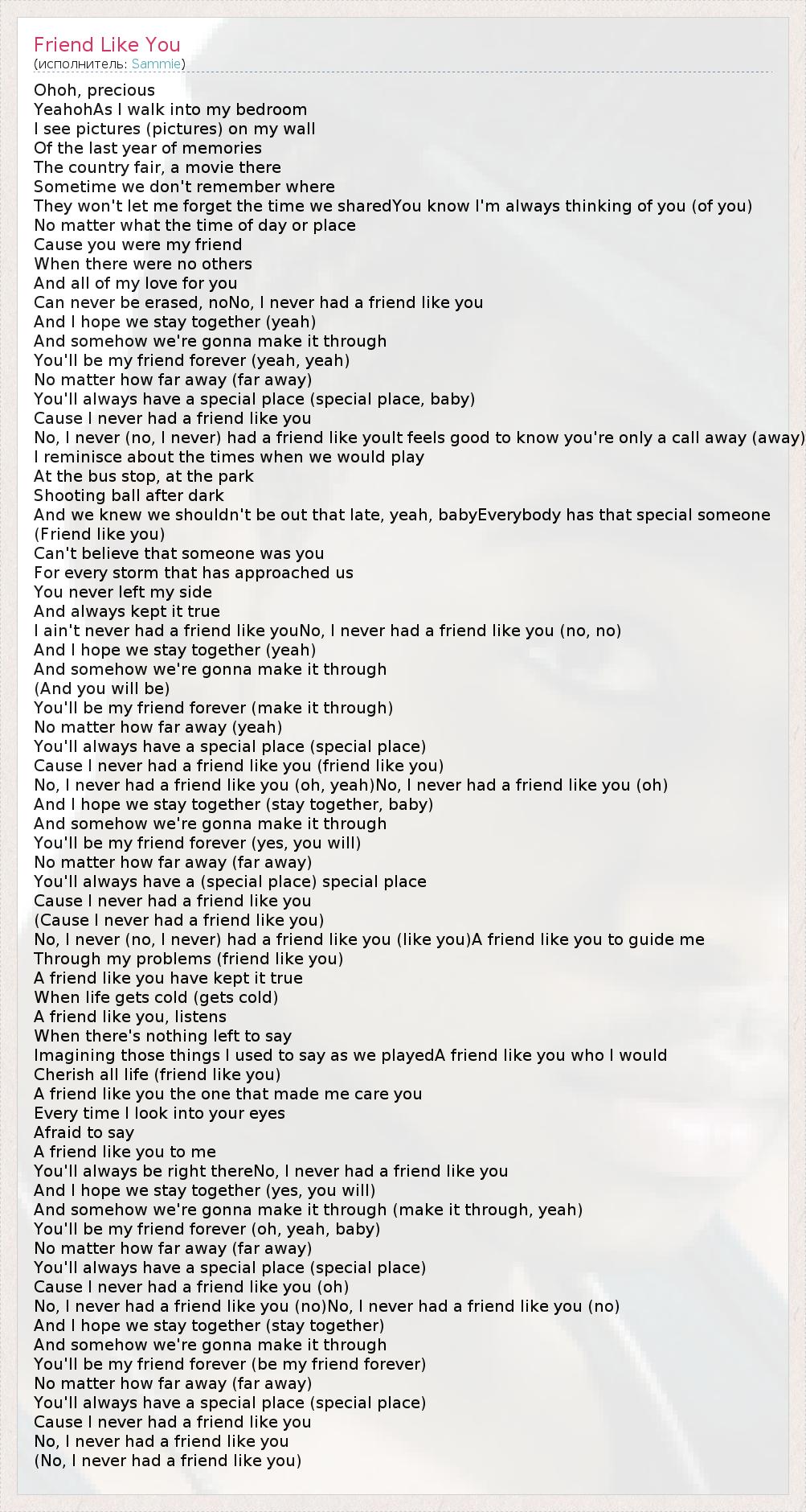 А как ты думаешь, о чем песня "Friend Like You" ?