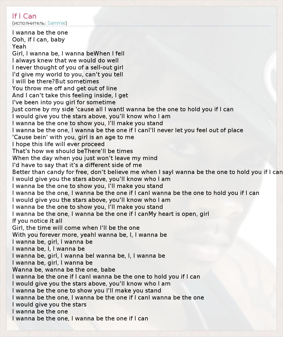 I wanna be the one, I wanna be the one if I canI wanna be the one to hold you if I can
