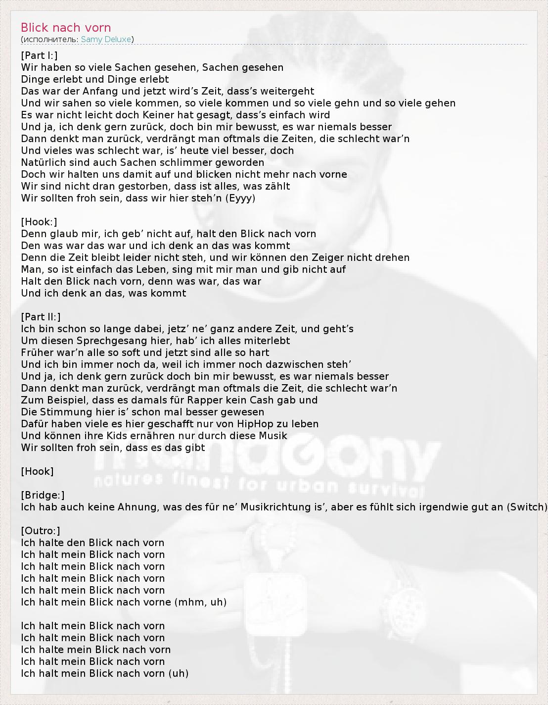 А как ты думаешь, о чем песня "Blick nach vorn" ?