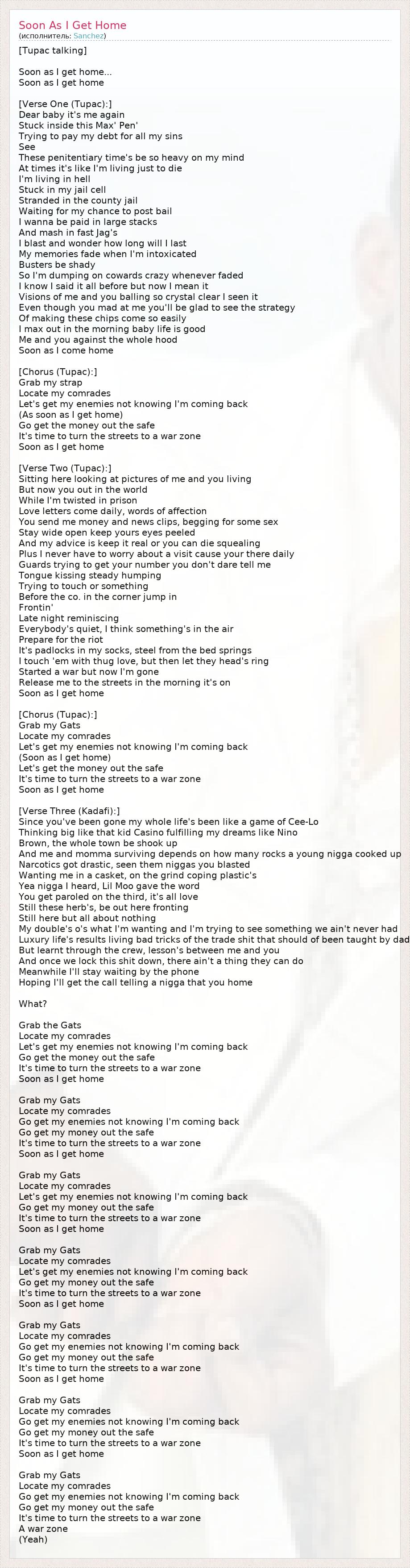 А как ты думаешь, о чем песня "Soon As I Get Home" ?
