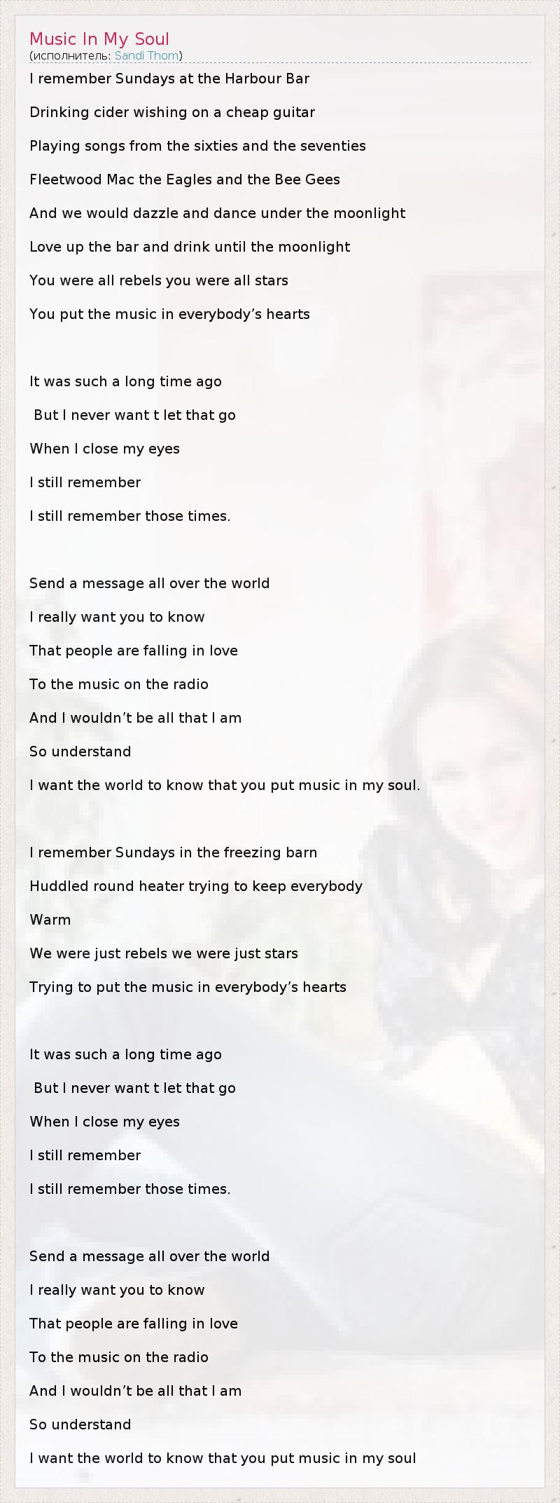 А как ты думаешь, о чем песня "Music In My Soul" ?