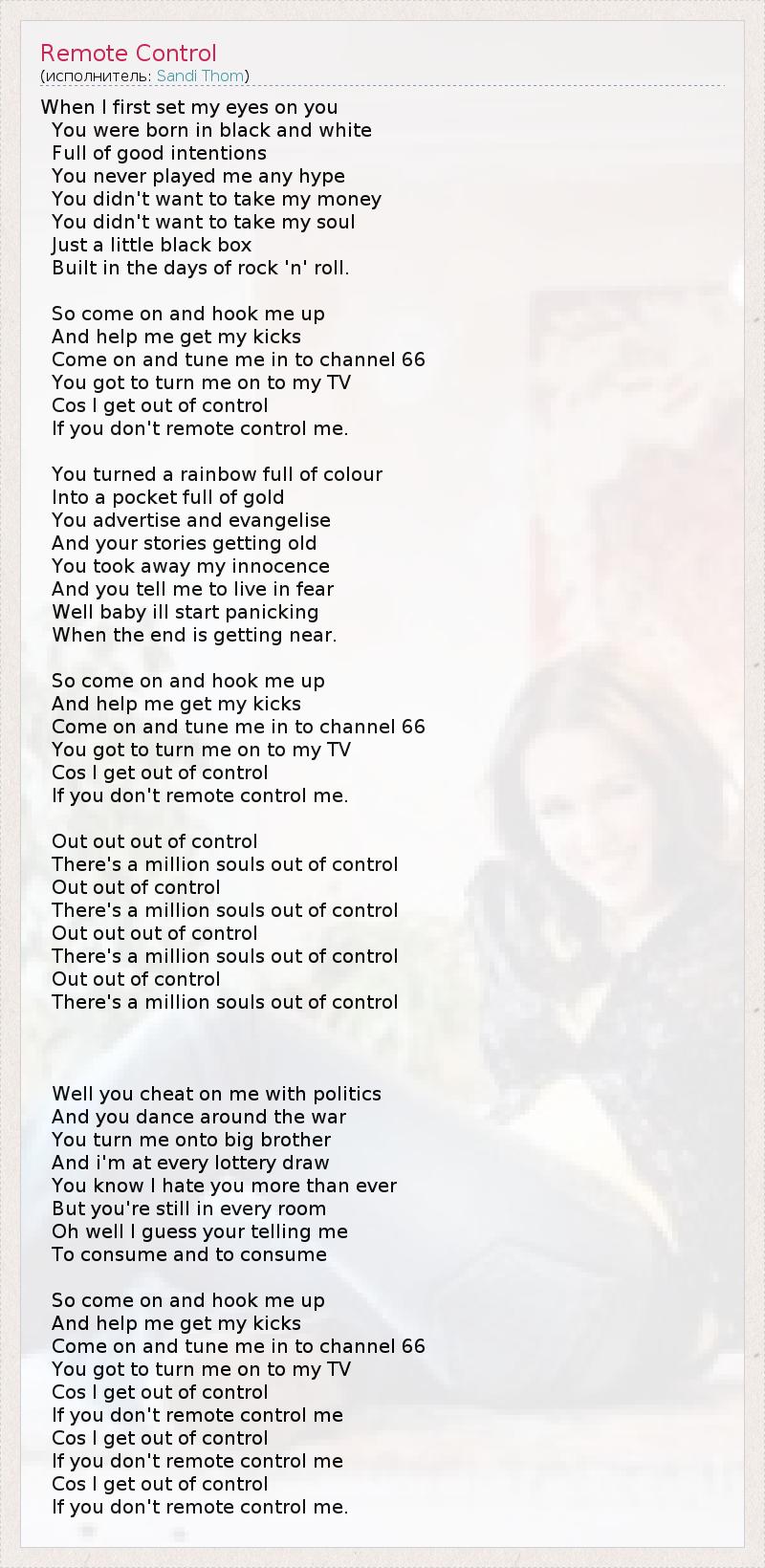 Это интересно:Вдохновляющий дебют Сэнди ТомАлександрия Том родилась в августе 1981 года в городке Банфф, в Шотландии. Во время учебы в школе она три года пела и играла на клавишных в группе The Residents, а затем пела в хоре духовной музыки Love and Joy и в группе без названия. Как-то раз Сэнди написала а капельный сингл I Wish I Was A Punk Rocker (With Flowers In My Hair) и всего за одну неделю он оказался на вершине списка мировых хитов.... продолжение