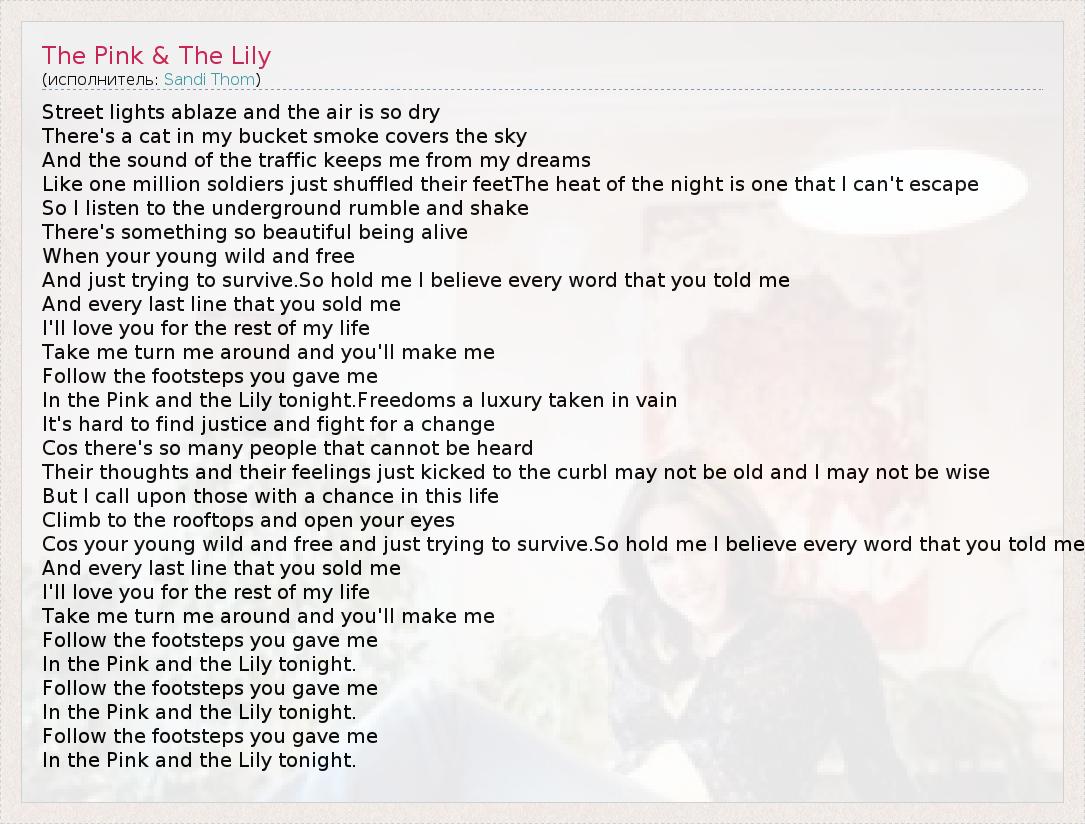 А как ты думаешь, о чем песня "The Pink & The Lily" ?
