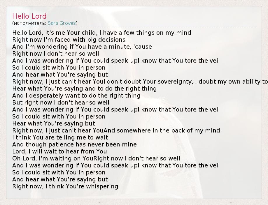 А как ты думаешь, о чем песня "Hello Lord" ?