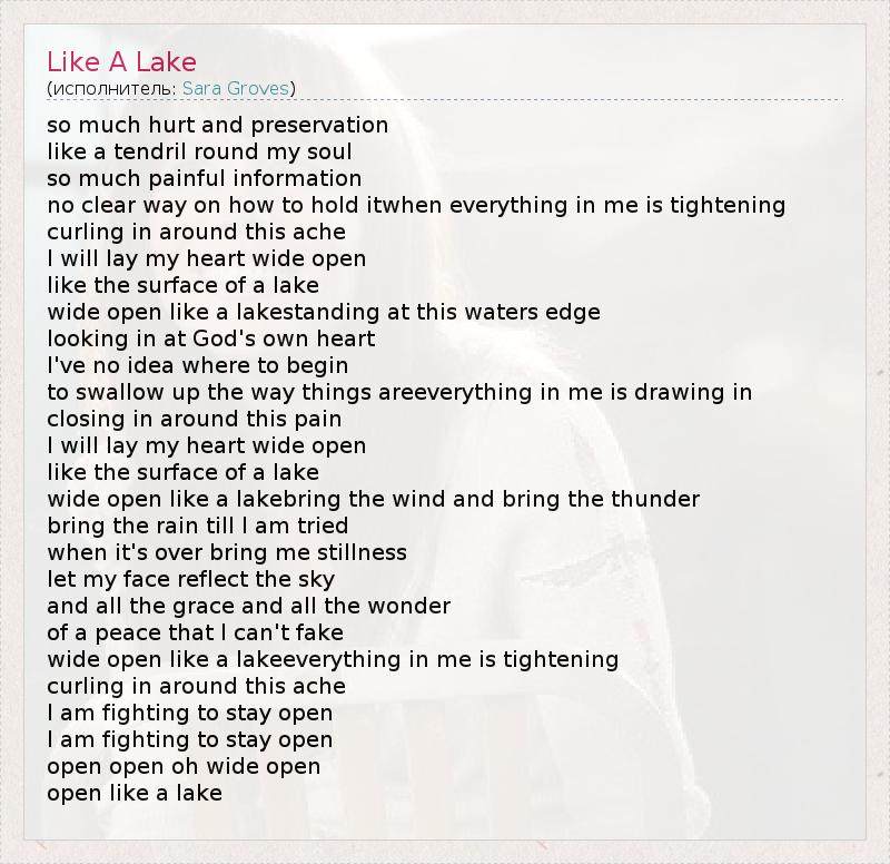 А как ты думаешь, о чем песня "Like A Lake" ?