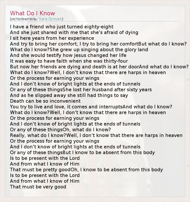 А как ты думаешь, о чем песня "What Do I Know" ?
