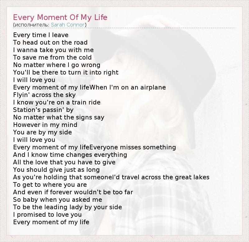 ГлавнаяИсполнителиSarah ConnorEvery Moment Of My Life