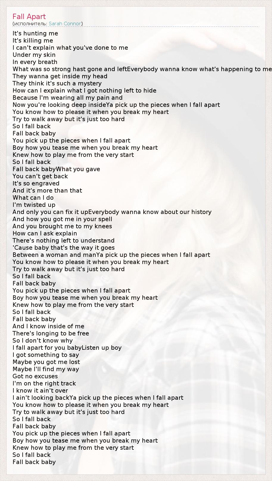А как ты думаешь, о чем песня "Fall Apart" ?