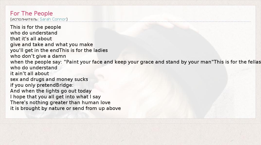when the people say: "Paint your face and keep your grace and stand by your man"This is for the fellas