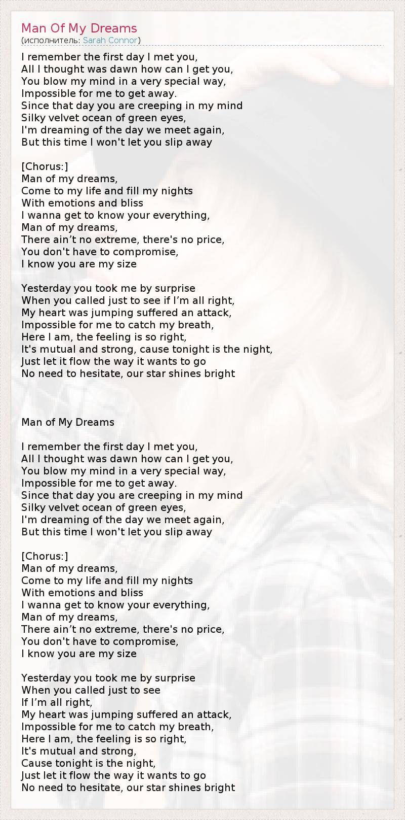 А как ты думаешь, о чем песня "Man Of My Dreams" ?