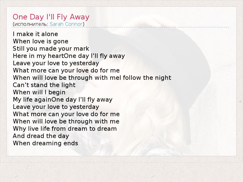 А как ты думаешь, о чем песня "One Day I'll Fly Away" ?