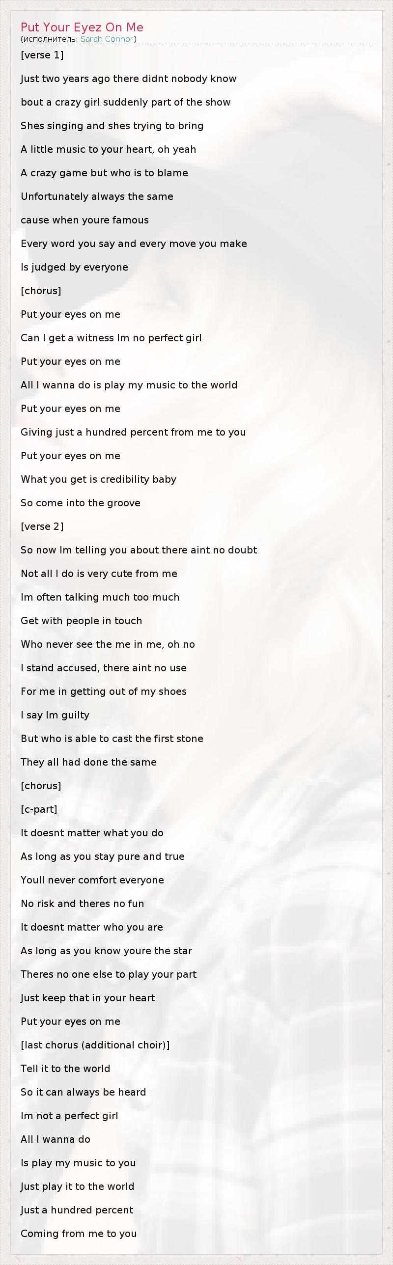А как ты думаешь, о чем песня "Put Your Eyez On Me" ?