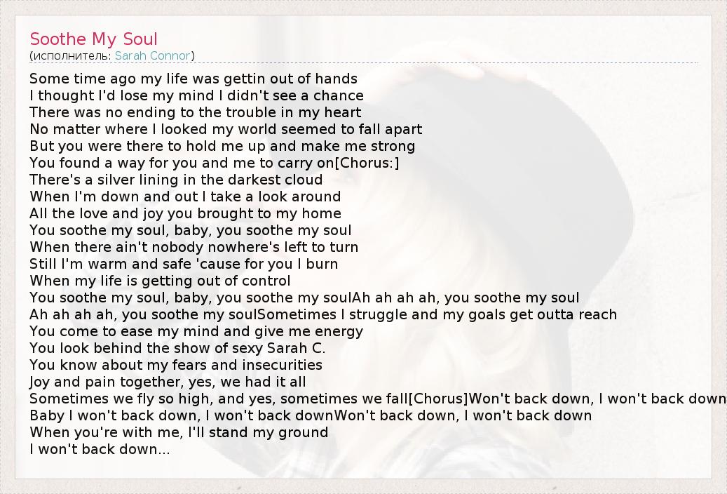 А как ты думаешь, о чем песня "Soothe My Soul" ?