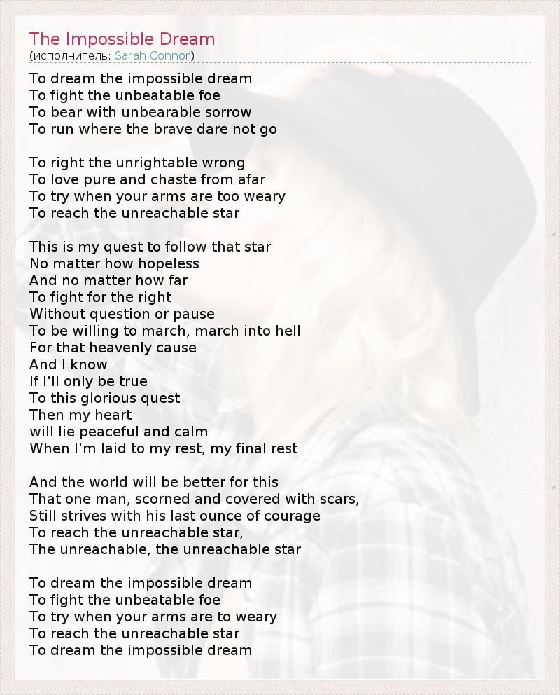 А как ты думаешь, о чем песня "The Impossible Dream" ?