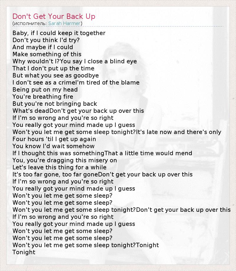 А как ты думаешь, о чем песня "Don't Get Your Back Up" ?