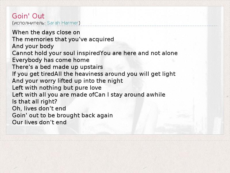 А как ты думаешь, о чем песня "Goin' Out" ?