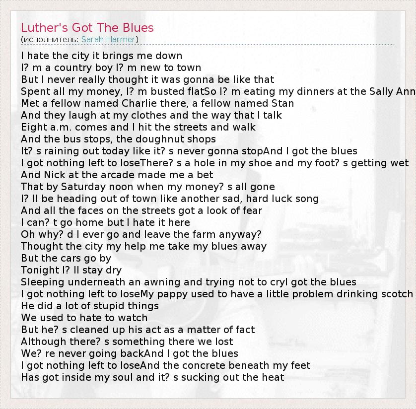 А как ты думаешь, о чем песня "Luther's Got The Blues" ?