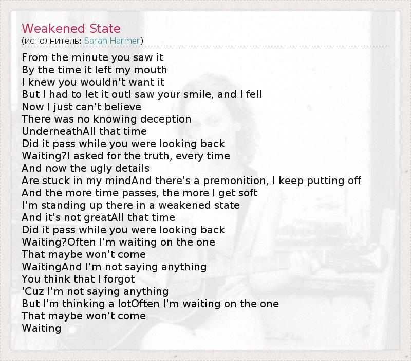 А как ты думаешь, о чем песня "Weakened State" ?