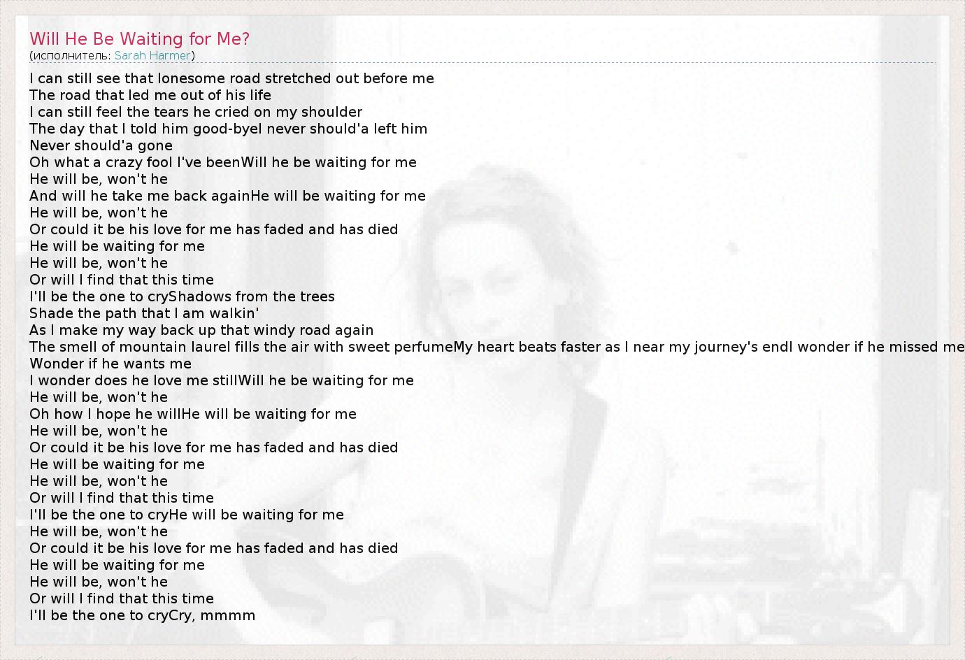А как ты думаешь, о чем песня "Will He Be Waiting for Me?" ?