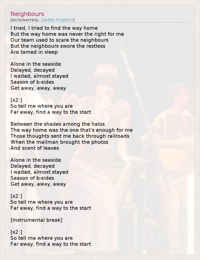 А как ты думаешь, о чем песня "Neighbours" ?