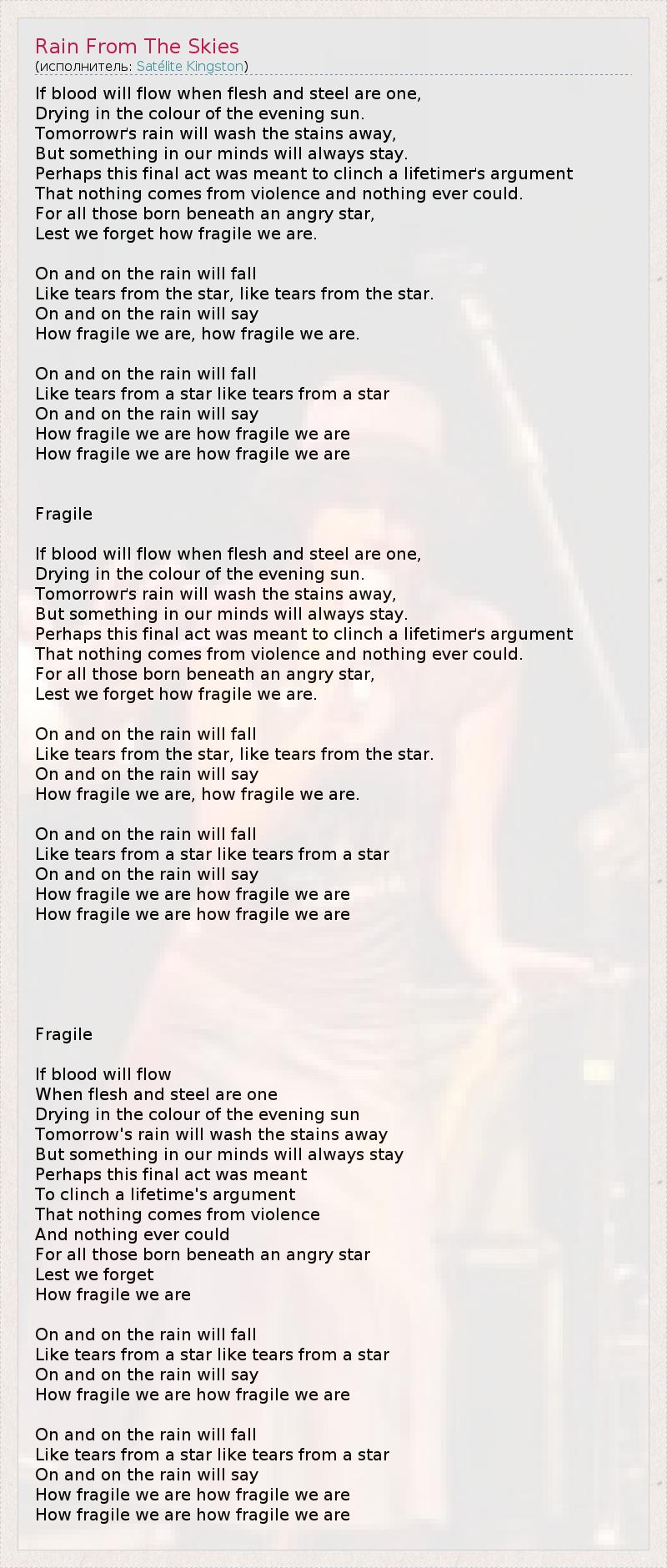 А как ты думаешь, о чем песня "Rain From The Skies" ?