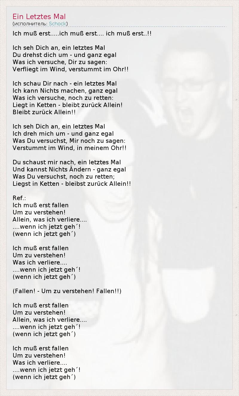 А как ты думаешь, о чем песня "Ein Letztes Mal" ?