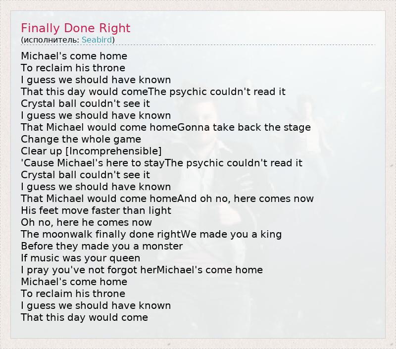 А как ты думаешь, о чем песня "Finally Done Right" ?