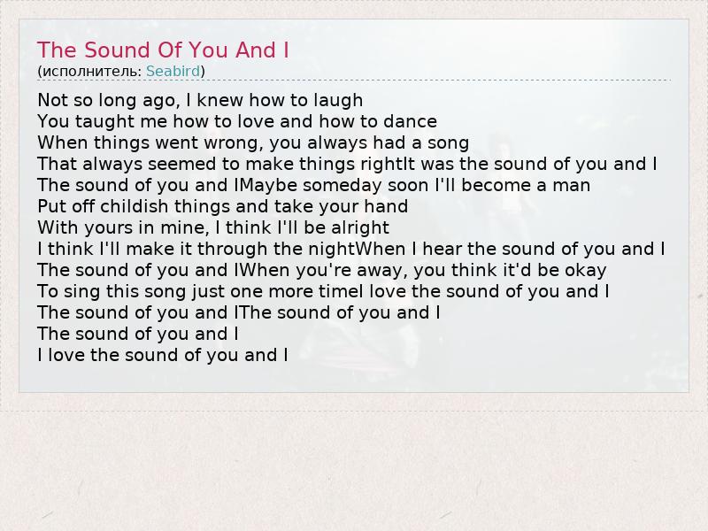 А как ты думаешь, о чем песня "The Sound Of You And I" ?