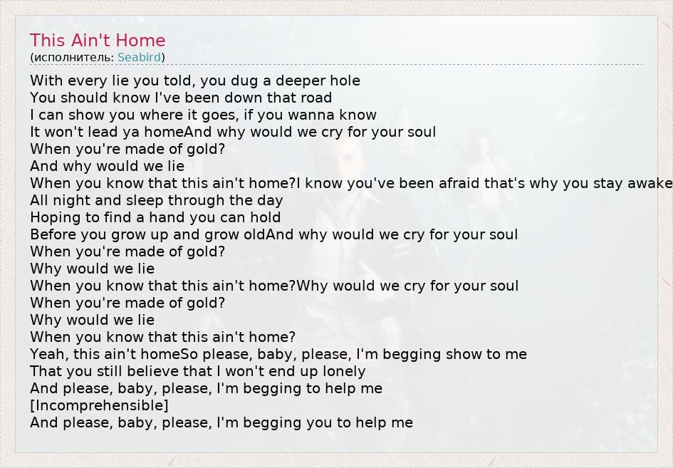А как ты думаешь, о чем песня "This Ain't Home" ?