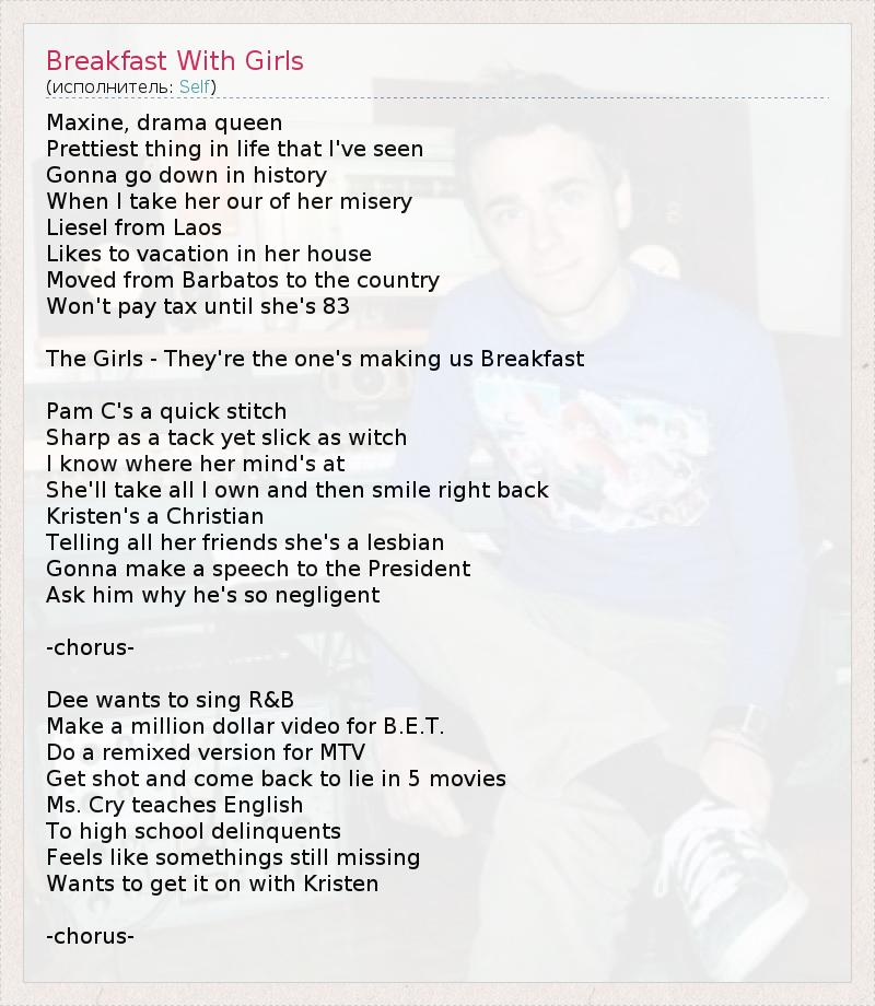А как ты думаешь, о чем песня "Breakfast With Girls" ?