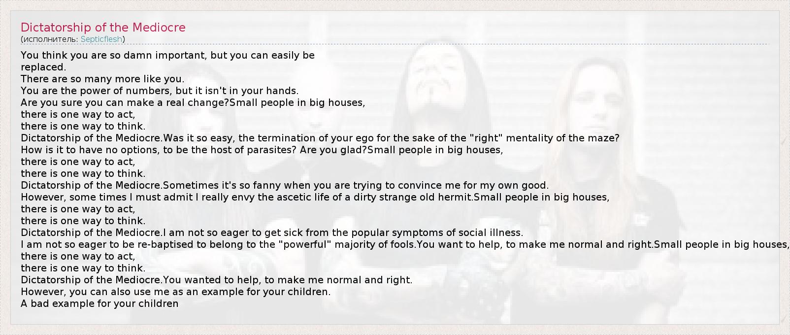 А как ты думаешь, о чем песня "Dictatorship of the Mediocre" ?