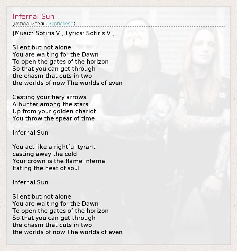 А как ты думаешь, о чем песня "Infernal Sun" ?