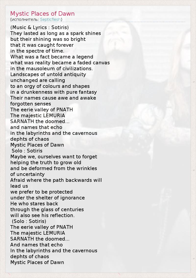 А как ты думаешь, о чем песня "Mystic Places of Dawn" ?