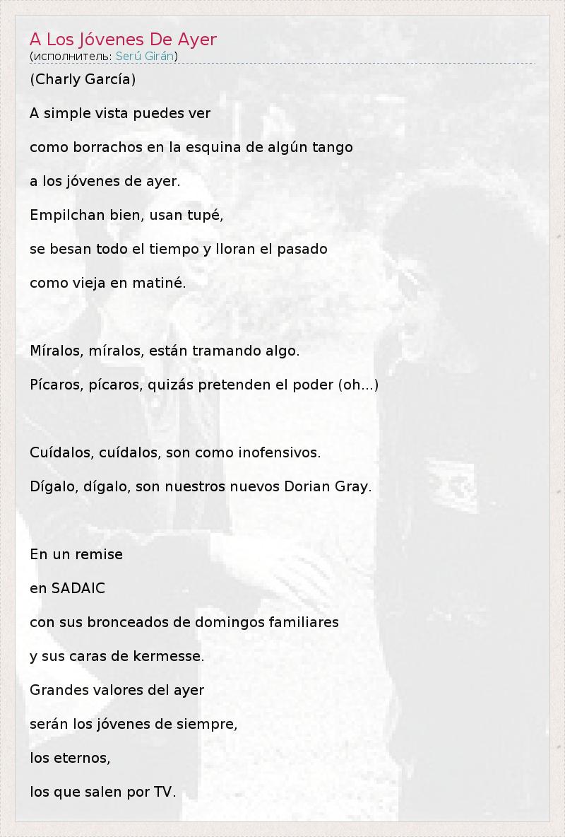 А как ты думаешь, о чем песня "A Los Jóvenes De Ayer" ?