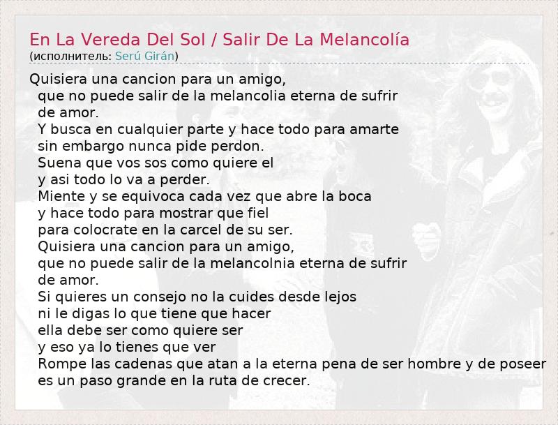 А как ты думаешь, о чем песня "En La Vereda Del Sol / Salir De La Melancolía" ?