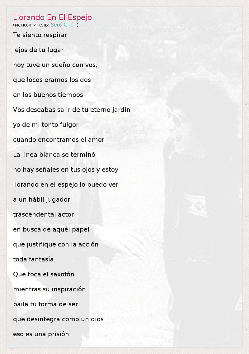 А как ты думаешь, о чем песня "Llorando En El Espejo" ?
