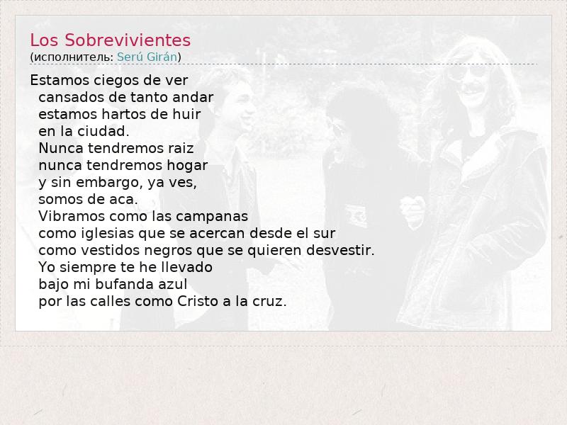 А как ты думаешь, о чем песня "Los Sobrevivientes" ?