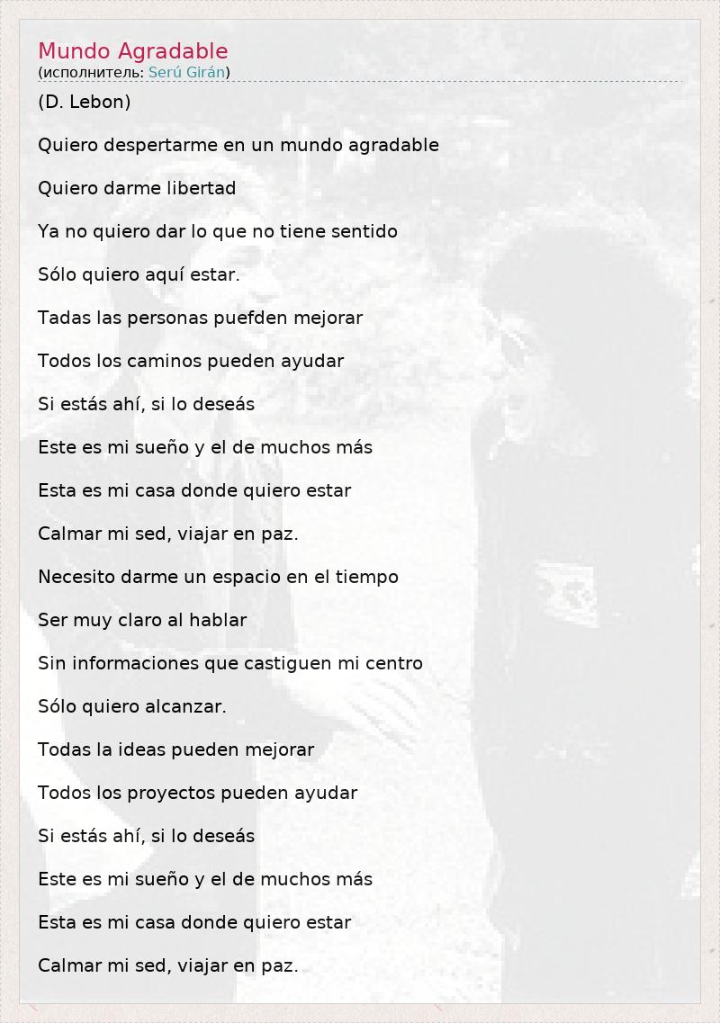 А как ты думаешь, о чем песня "Mundo Agradable" ?