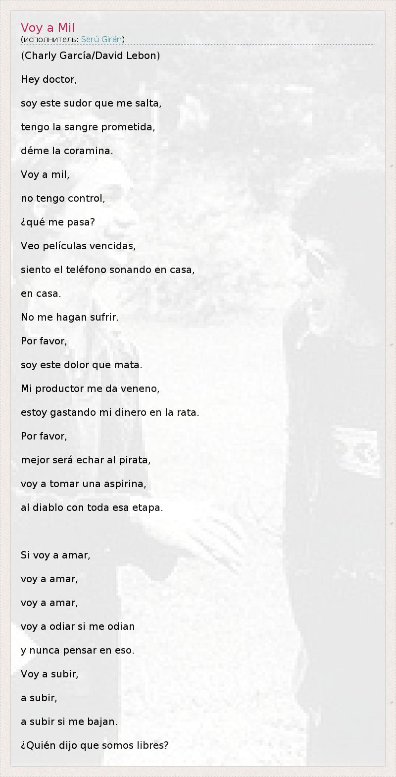 А как ты думаешь, о чем песня "Voy a Mil" ?